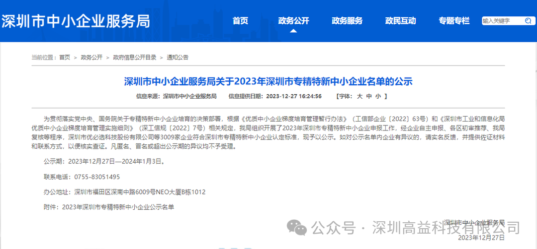 2023年12月27日,深圳市中小企业服务局正式公示了《2023年深圳市专精特新企业名单》,深圳高益科技有限公司荣幸上榜,这一荣誉不仅是对公司长期不懈努力的肯定,更是对其卓越业绩的闪耀注脚。
