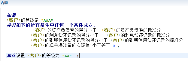 Wodm规则的核心是基于自然语言的文本规则形式,无论普通规则、决策表或决策流,其中都有大量的自然语言规则语句,并且都是纯文本编辑。